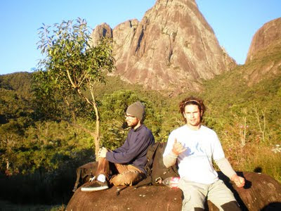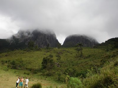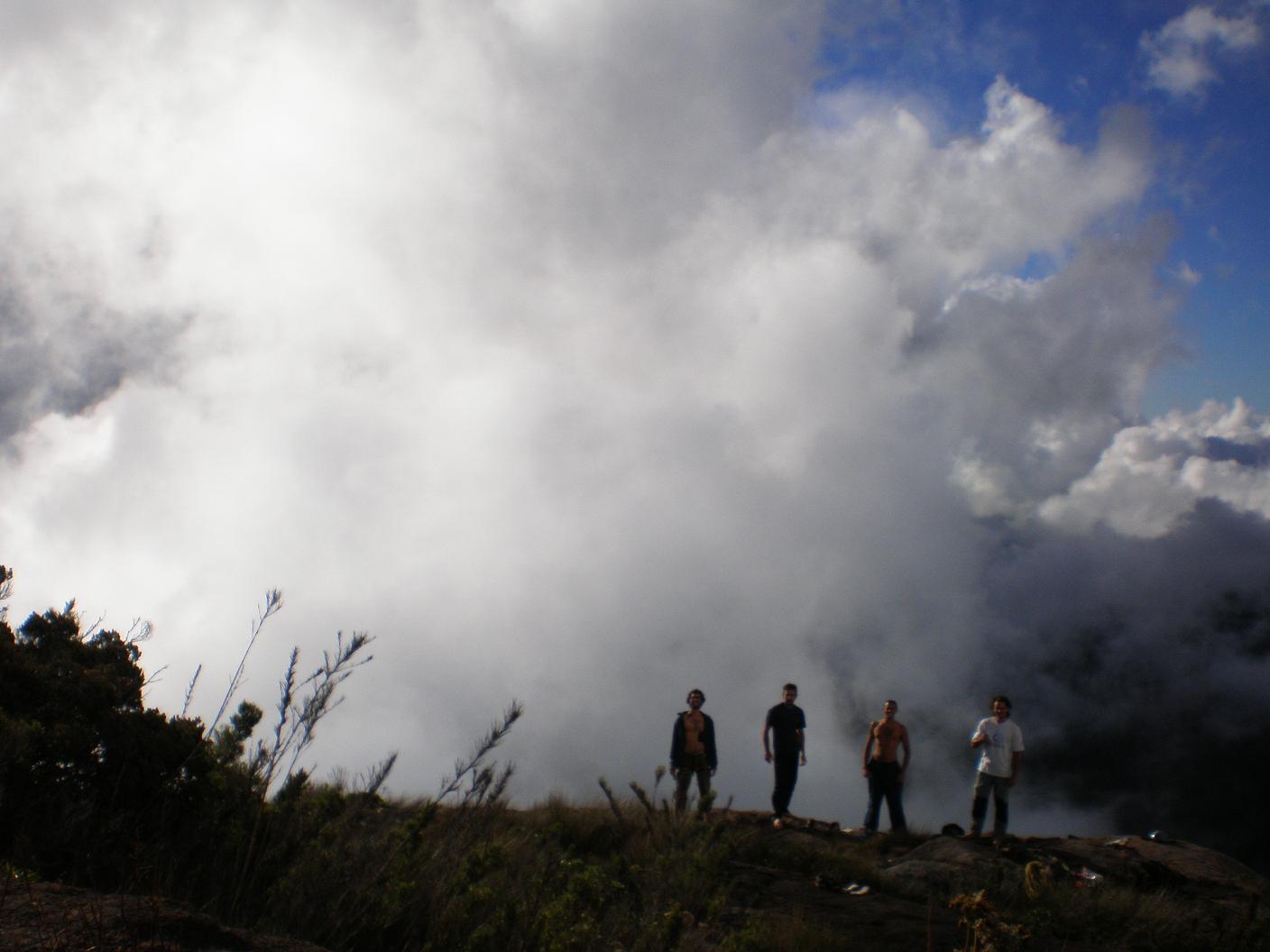 No dia seguinte pela manhã fomos eu, Zé e Raíssa pra Barrinha e de tarde arrumamos a mochila e começamos a peregrinação pra Salinas: ônibus pra Nova Friburgo, de lá um ônibus urbano pra rodoviária do Centro, dormida na cidade, compras de manhã e ônibus pra São Lourenço, descendo em Santa Cruz. Carona com o Maicon até o abrigo do Tartari, onde pegamos umas informações e subimos andando até o Camping dos Deuses, acompanhados do Ílson (PE) e do Fred (RJ) que estavam saindo pra trilha do Pico Menor. Quase 2h depois estávamos no camping, um lugar impressionante, quase na base do Capacete.