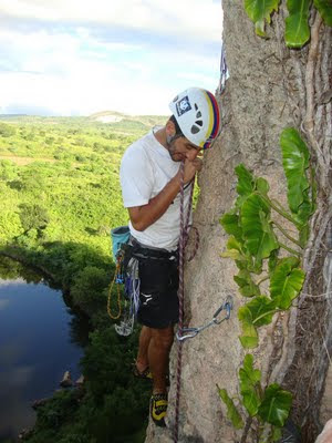 Miguel já escalando a via pronta