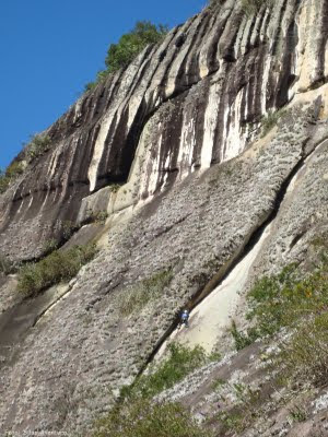 A via em si não é muito grande, quando concluída terá menos de 250m, mas possivelmente será por si só a via mais demorada de Brejo, creio que seja um D3, o que torna a escalada mais comprometedora é o fato dela estar em um local de acesso difícil e demorado. Aventura garantida!