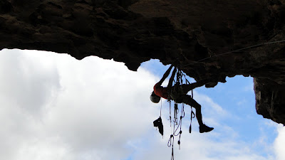 No último dia voltamos pra lá, dei mais um pega e encadenei também, enquanto isso o Otto começou a conquistar a linha ao lado, depois eu terminei o que seria a Bruxa*** (8a?) uma bela via que ficou como projeto, pois já não restava mais força nem pra carregar a mochila, quanto mais pra ficar pendurado naquele teto, o pior é que eu caí na última agarra da via, que ainda estava bem suja…essa ficou pra próxima trip!