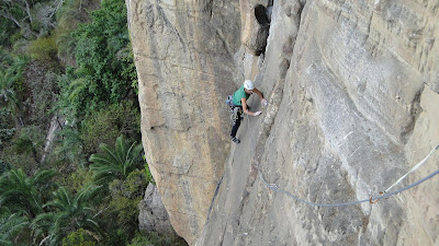 No mesmo domingo me levaram pra conhecer as vias do Morro do Napoleão, entrei na Jesus que Calor*** (7c), Cagaço de Calango*** (7b) e Congestão (7a), os filés do setor segundo Otto. Todas com 30m e geralmente com uma saída forte uma escalada flúida até o final da via.