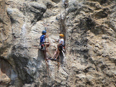 No primeiro dia fomos no setor da caverninha o qual eu ainda não conhecia, entramos em algumas vias de até VI sup e depois saiu a Capitão Caverna (7b/c), bonita via com início em um tetinho com boas agarras.