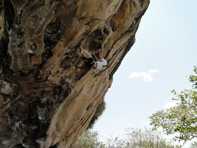 No outro dia o Júlio Francês me apresentou uma tal de Ojuara, via que o Cesinha tratou de encadenar em 2 pegas, sugestão de 9b/c, que via incrível! Assim eu adquiri mais um bom projeto em Serra Caiada, dei umas boas entradas no sábado e no domingo e na última caí relativamente próximo do fim do crux, aiai!!