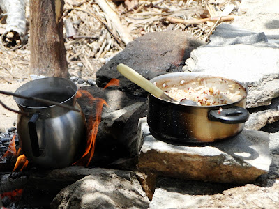 Descemos pela trilha e como ainda era cedo, preparamos um almoço na fogueira e descansamos enquanto o sol baixava um pouco.