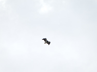 O Denn, que já escalou por lá muitas vezes e tomou uns cascudos já, nos avisou pra ficarmos espertos lá pela terceira enfiada, mas logo no início, enquanto eu escalava tranquilamente tomo o primeiro rasante da galinha, um barulhão sinistro pra ficar esperto! Depois ela ficou só de longe e sumiu.