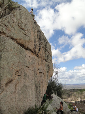 No sábado Wolgrand nos levou em uma pedra bem interessante onde haviam algumas vias esportivas e outras em móvel, ficamos bastante surpresos com a qualidade da rocha no local: um granito claro com generosas agarras, pegadas variadas (pinças, regletes, agarrões e alguns abaolados) tudo muito sólido! Bem diferente da maioria das rochas da região.