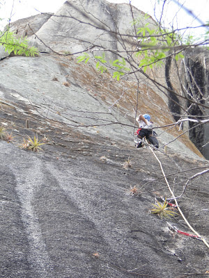 Da última (e primeira) vez que fui a Sítio Novo, escalamos duas das três vias conhecidas do local, faltou a terceira. Localizada na outra face (face norte) e ainda sem nenhuma repetição após a conquista em 2008 encontra-se a “Muléstia da Cachorra”, aberta pelo Bernardo e pela Mariana.