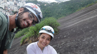 Quarta-feira fui com o Luciano (pernambucano que vai virar carioca) fazer a Italianos + Secundo, no Pão de Açúcar. Acho que já fiz essa via umas 4x mas essa foi a mais emocionante…kkkkkk Que friaca!! Estava ventando de um jeito que eu nunca vi, gelado, especialmente pra quem preferiu não levar o anoraque. Eu dava seg e quando tava começando a tremer, era hora de escalar denovo, assim fomos até o cume, em um dia muito divertido! Ah, depois disso ainda estiquei com o Felipe até a gruta do primatas, ele deu dois pegas na Orangorock e eu dei uma entrada na Religare, só pra fazer uma força, quem sabe um dia rola a cadena!