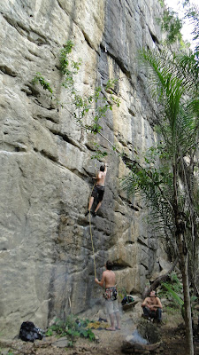 Não mais que de repente aparecem três escaladores de Brasília/Rio: Leandro, Grazi e Álvaro, eles estavam passando uns dias em Quixadá e deram um pulo na falésia pois ficaram sabendo que tinha gente por lá, como o mundo é pequeno..haha