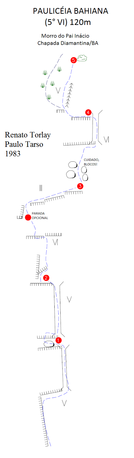 Se trata da Pauliceia Baiana, 5° VI 120m, nenhuma proteção fixa ao longo da via.