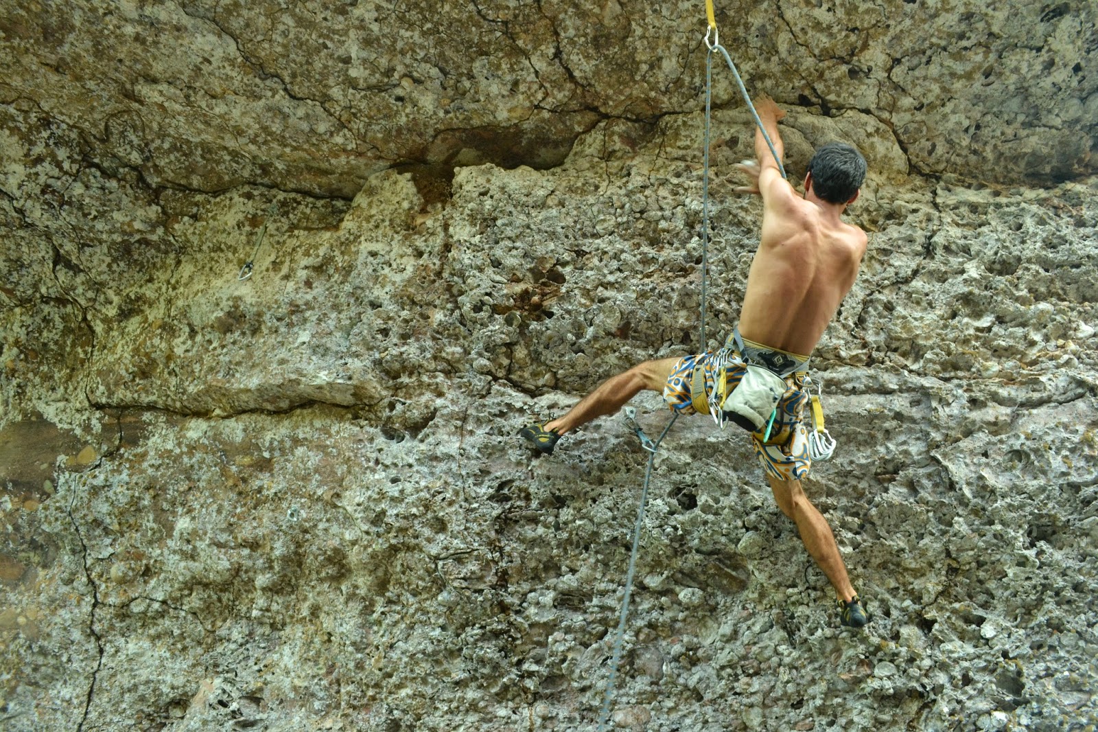 Escalamos no setor do labirinto, que fica a 5 min da cidade e tem um monte de vias legais, negativas com boas agarras. Dessa vez saiu a extensão da “Vai quem pode”, antigo 8b de regletes que tinha saído à vista em outra ocasião, agora possui mais umas 5 chapas em uma aresta de boas agarras após a parada antiga. Mandei após cair algumas vezes no crus da via (ainda na parte velha).