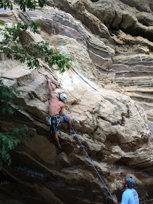 Sábado seguimos pra Pedra da Arara, localizada no município de Macambira, distante cerca de 80km de Aracajú. O lugar é impressionante, uma falésia bem extensa, na beira do rio, com setores de vias esportivas, boulders e algumas escaladas em móvel.