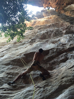 A trip tava ganha, mas ainda tinha uma tal de Mumm-Ha (9a) que estava me dando dor de cabeça, em outra ocasião ela me fez cair muitas vezes no mesmo movimento, um dinâmico pra um regletão, pés ruins na saída e um voo perdendo os pés. Dessa vez ainda entrei 6 vezes e caí todas elas no mesmo movimento, sempre que caía na cadena, voltava e conseguia fazer, fui lapidando o movimento, percebi que pés mais baixos e o voo mais suave era melhor e gastava menos força, permitia um controle maior. Mas ainda assim demorou, até que desisti, dei a última entrada na via, se mandasse bem, se não, ficaria pra outra trip, não gosto muito de ficar tentando um movimento eternamente, aí acertei, cadena! Hahaha